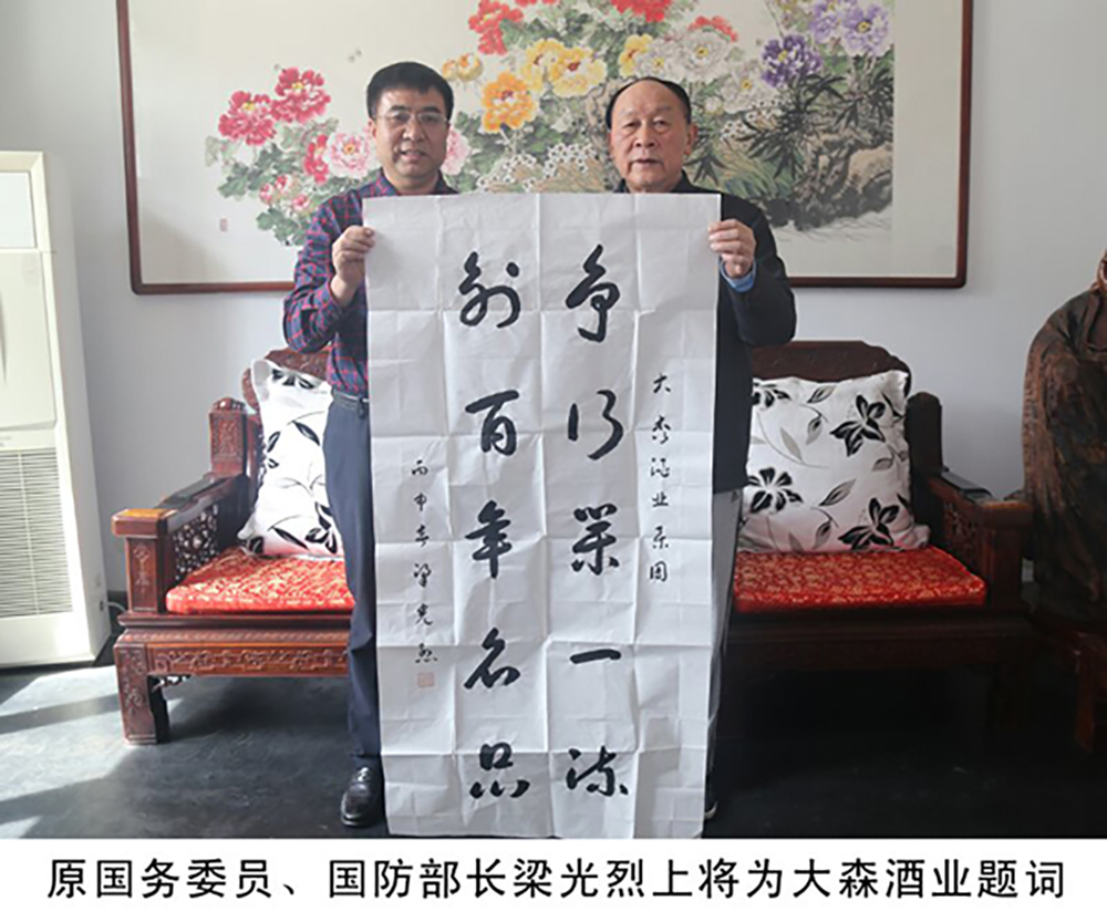 原国务委员、国防部长梁光烈上将为大森酒业题词