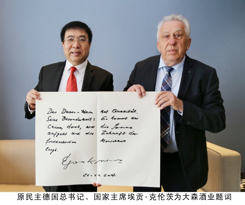 原民主德国总书记、国家主席埃贡●克伦茨为大森酒业题词
