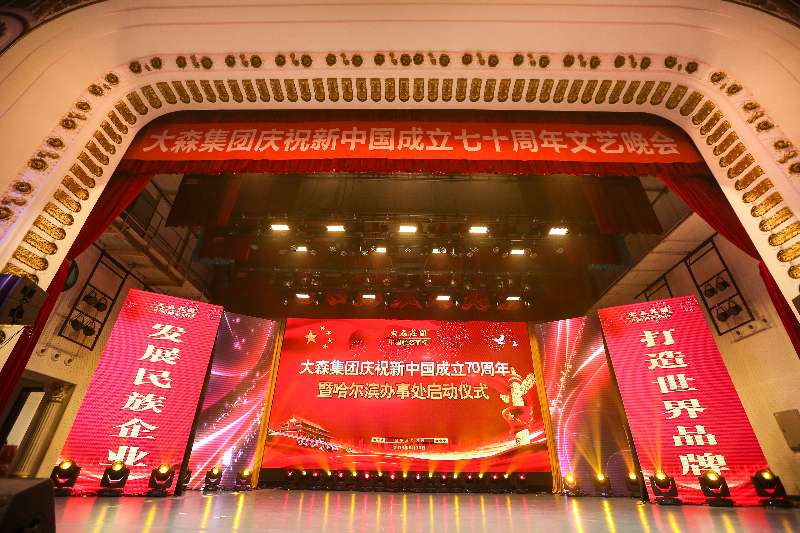 为庆祝新中国成立70周年,热情讴歌新时代,展现伟大成就。2019年8月10日,大森集团庆祝新中国成立70周年暨哈尔滨办事处开业庆典文艺晚会,在哈尔滨友谊宫盛大举行。来自政界、军界、文艺界、及社会团体等1000多人,观看了来自首都文艺工作者奉献的一场精彩的文艺演出。