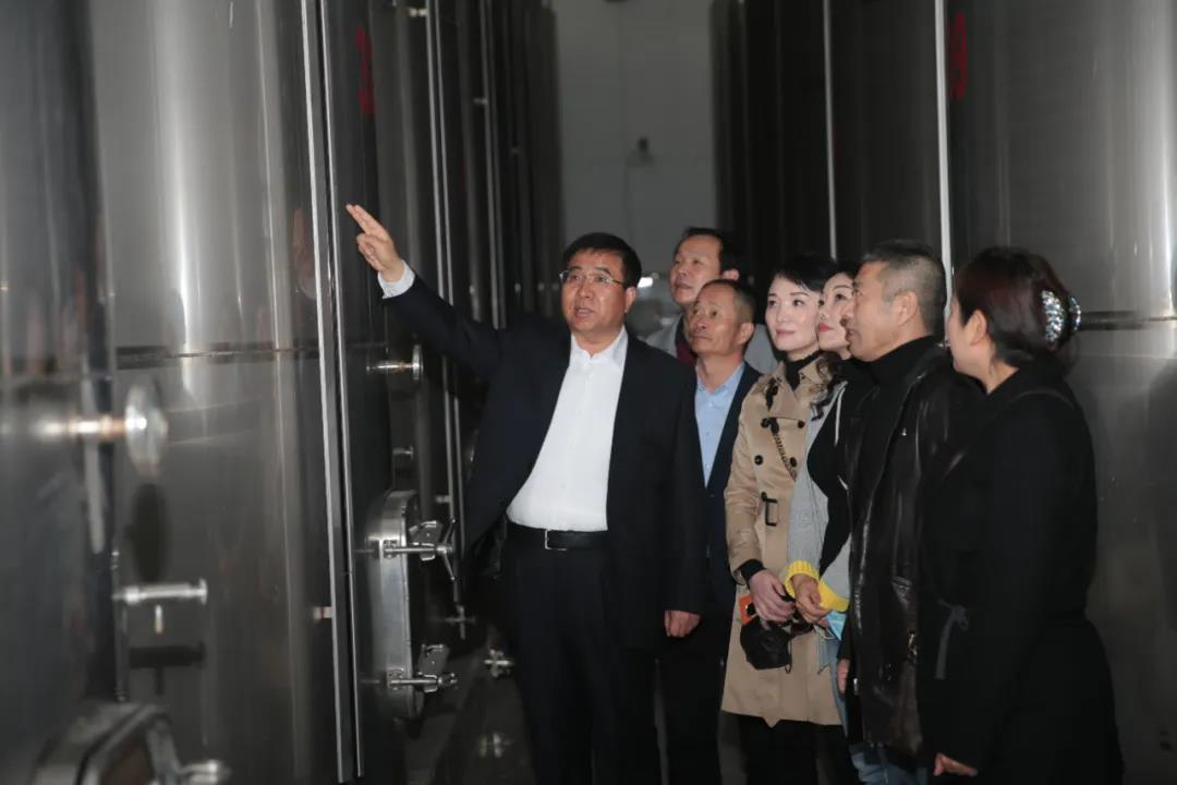 董事长一行人在公司酒窖参观