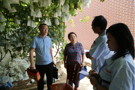 市检查组按照《绿色食品认证程序》、《绿色食品认证现场检查工作规范》、《绿色食品产地环境质量》、《绿色食品农药使用准则》以及《绿色食品肥料使用准则》等绿色食品认证的相关依据,依次召开了申报首次会议,开展了实地检查、随机访问、查阅记录、总结和情况反馈,对申报的绿色食品产地环境质量状况、周边污染源情况、种植过程及包装、贮藏运输、申请材料的真实性等进行查阅检查;对种植葡萄农药、肥料等投入品的使用情况及购买记录、使用记录及相关证照、质量管理体系和生产管理制度落实情况等进行了调查核实,并与公司负责人进行了座谈交流。