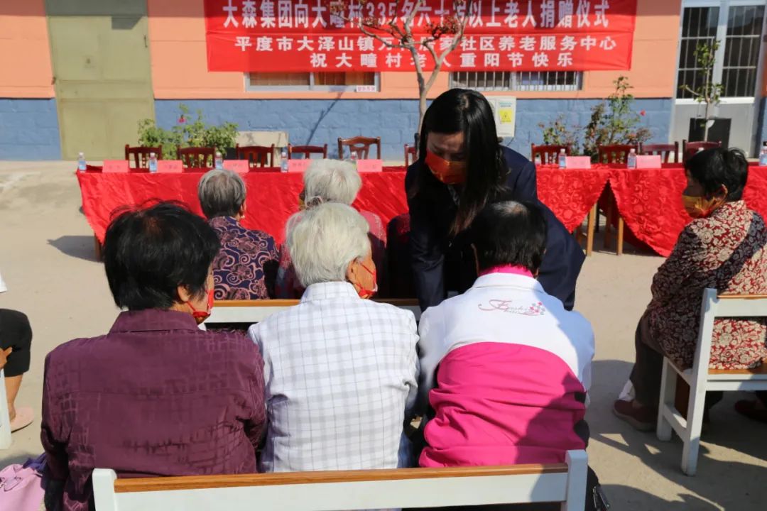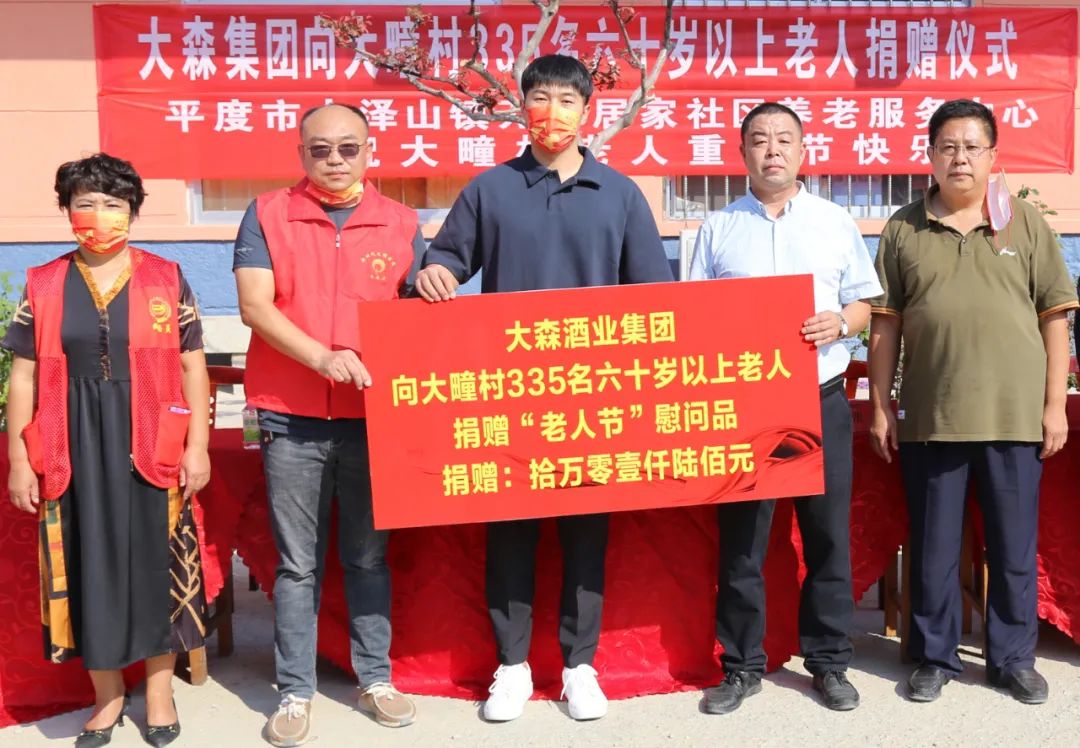 在“重阳节”到来之际,为弘扬中华民族传统美德,践行助老、敬老、爱老的优良传统。9月30日,大森酒业集团一行十多人,在公司副总经理张璐的带领下,来到大泽山镇大疃村,慰问了335名六十岁以上老人,进行爱心捐赠活动。大泽山镇党委书记王清祥、大疃村支部书记张杰等一起参加了捐赠活动。